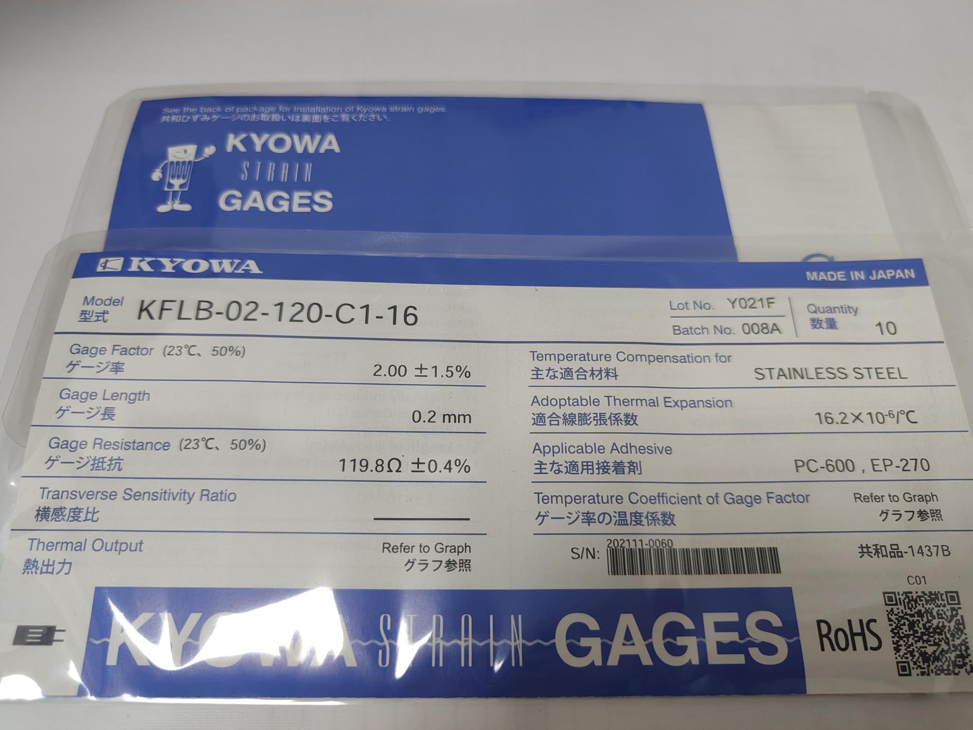 日本KYOWA應變片KFGS-10-120-D17-11 R3M3
